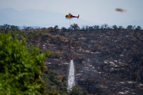 2025年7月2日,直升机在西班牙列伊达的森林火灾中灭火。西班牙连日来遭遇强热浪侵袭,高温导致各地森林火灾风险上升。该国东北部加泰罗尼亚自治区列伊达近日发生森林火灾。新华社发(胡安·戈萨摄)