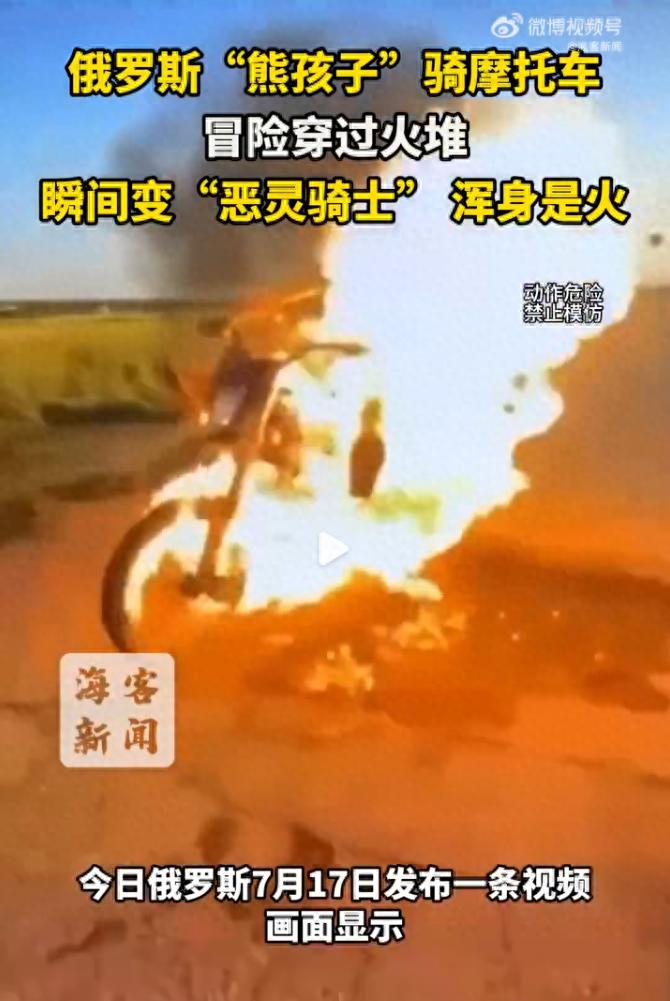 俄小学生骑摩托穿火堆秒变恶灵骑士。今日俄罗斯7月17日发布一条视频,画面显示,一名俄罗斯的小学生骑着摩托车,冒险穿过火堆,不料瞬间连人带车起火,仿佛电影里的“恶灵骑士”。小学生受到惊吓后,立马弃车逃跑。