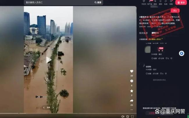 重庆警方公布三起汛情谣言 严厉打击造谣行为