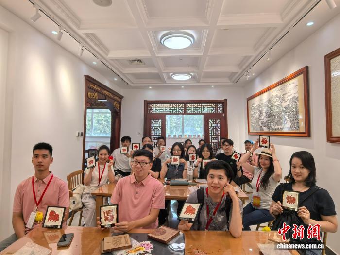 7月18日,台胞青年体验剪纸技艺。秦旭 摄