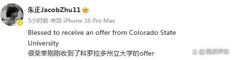 朱正社媒自曝收到科罗拉多州立大学offer,这是什么样的高校? NCAA D1联盟强校抛出橄榄枝