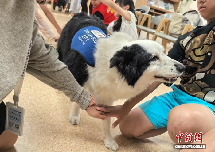 孩子们与治疗犬互动。(中新网记者 陈静摄)