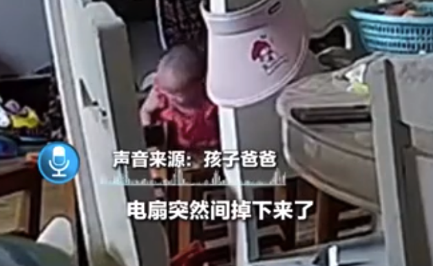 家中电风扇突然坠落 万幸1岁宝宝刚刚爬离危险区域