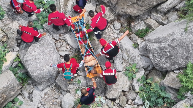 男子上山采嘟柿被困 多部门搜救 无人机悬崖救人