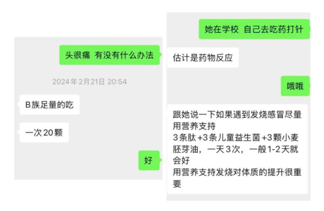 陈女士因女儿身体不适咨询该“营养师”,得到“遇到发烧感冒尽量用营养支持”“用营养支持发烧对体质的提升很重要”的“营养指导”。
