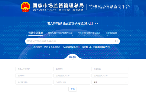 市场监管总局官网特殊食品信息查询平台