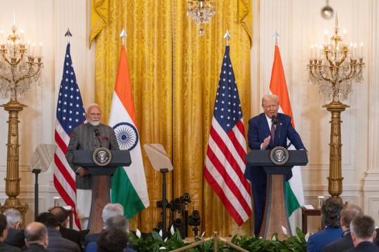 2月13日,美国总统特朗普(右)与到访的印度总理莫迪在华盛顿白宫出席联合记者会。新华社记者胡友松摄