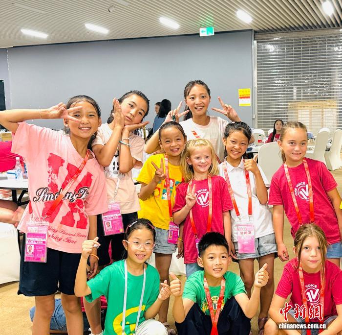 8月2日,大凉山妞妞合唱团的小朋友与中外小朋友一同练习成都世运会主题曲。吉布小龙供图