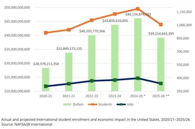 根据美国国际教育协会NAFSA和研究机构JB International的一份最新报告显示,今年秋季美国大学的新入学国际学生人数可能会减少30%到40%。