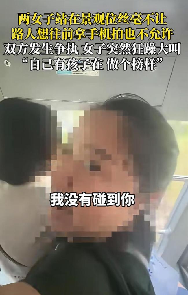 两女子霸占景观位不许别人拍 公共空间的无理之争!在马来西亚的一个网红景点,两名年轻女孩为了拍照占据了最佳观景位置,引发了一场闹剧。这个景点需要乘坐类似缆车的小火车上山,沿途风景优美。两位女主角早早抢占了第一排的位置,摆好姿态自拍,完全无视后面游客的存在。