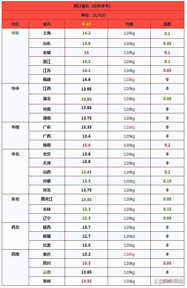 猪价下跌势如破竹,最新猪价发布 供应过剩需求淡季!8月即将过半,国内生猪市场近期呈现单边下降趋势。去年8月中旬猪价创下全年高点,而今年同期却创下新低,标猪报价触底13.76元/公斤。猪价下行主要由于生猪供应叠加效应和消费处于季节性低谷,导致产销过剩。