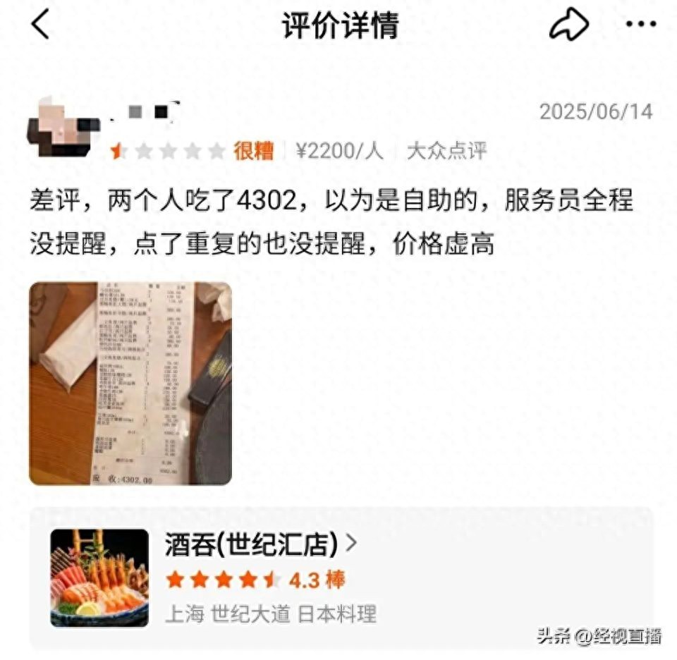 顾客日料店消费4302元引热议。
