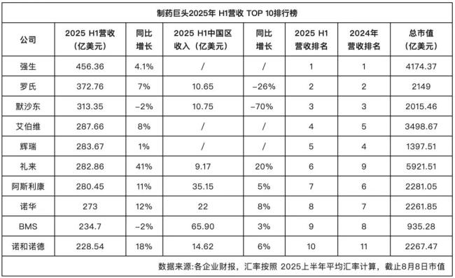 2025年上半年全球制药巨头营收TOP10出炉,强生、罗氏、默沙东稳坐前三,同时TOP10在中国区变局加速。