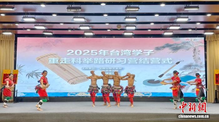 8月14日,2025年台湾学子重走科举路研习营结营仪式在北京举行。图为来自花莲的青年们现场表演舞蹈《刺桐花开》。李百加 摄