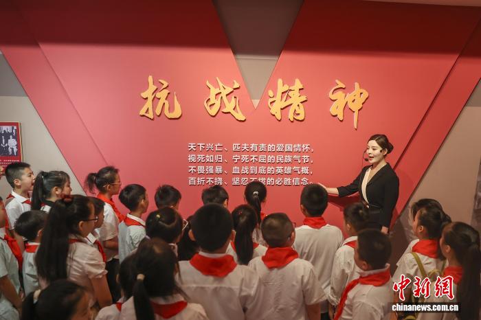 8月15日,江西南昌,一群学生在南昌新四军军部旧址陈列馆聆听讲解员讲解。中新社记者 刘力鑫 摄