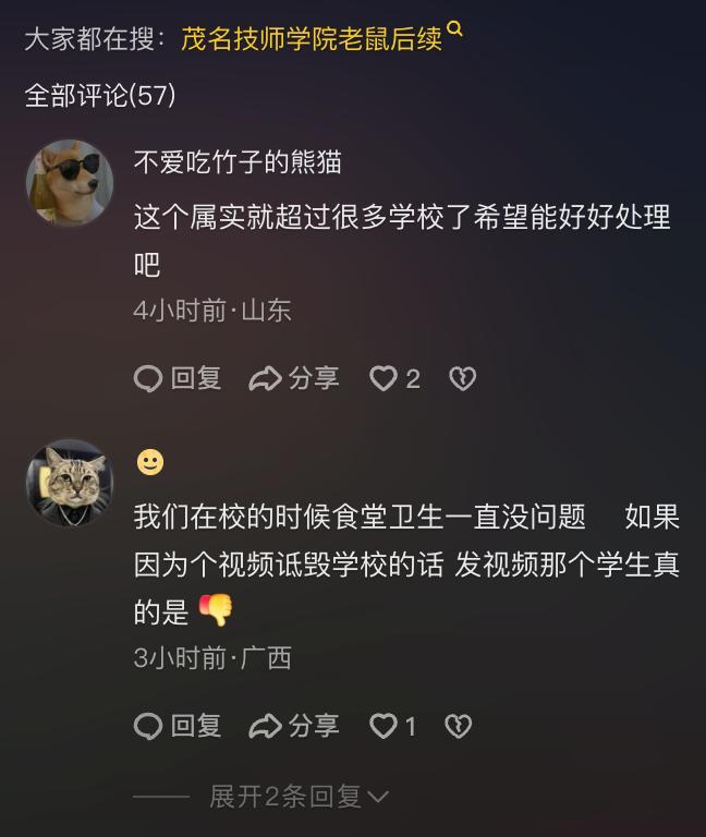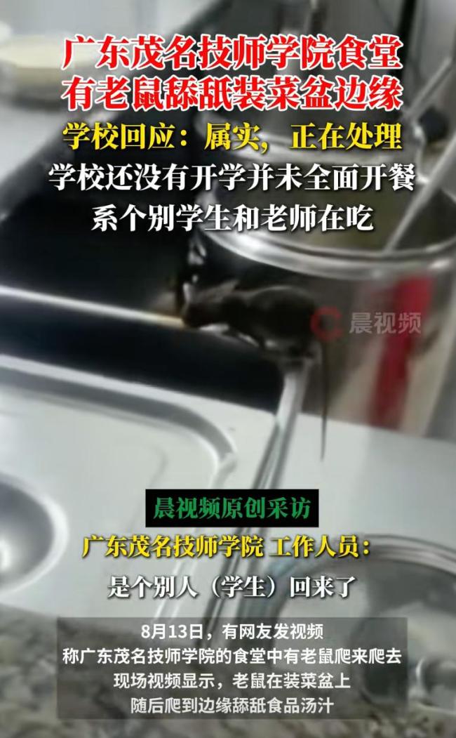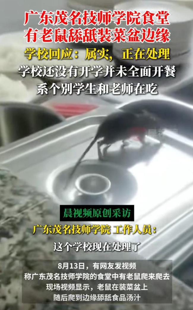 学校食堂有老鼠舔菜盆?回应 校方大方承认处理中!广东一高校食堂出现老鼠舔舐装菜盆边缘的视频在网络上疯传,校方对此做出了回应。