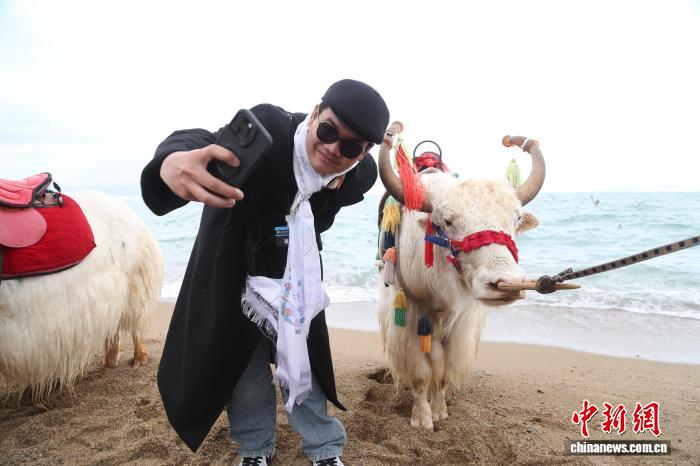 图为柬埔寨歌手ChhinEychinh在青海湖边与牦牛合影。张忠苹 摄