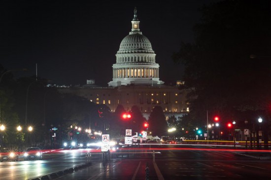 这是7月2日晚在美国首都华盛顿拍摄的美国国会大厦。新华社记者胡友松摄