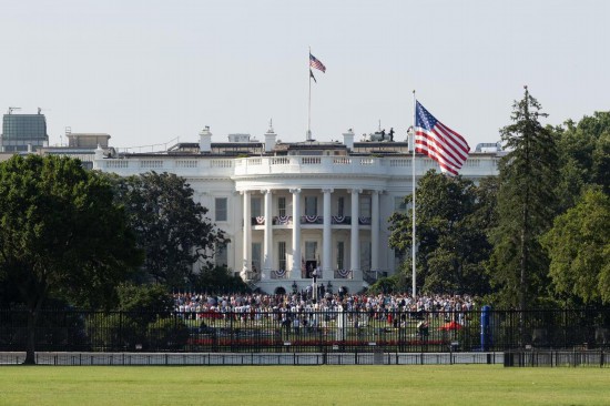 7月4日,在美国首都华盛顿白宫,美国总统特朗普发表讲话。新华社记者胡友松摄