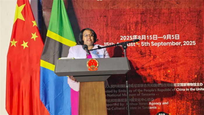 坦桑尼亚自然资源和旅游部部长查娜致辞。驻坦桑尼亚使馆供图