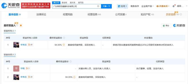 8月19日,天眼查工商信息显示,广东棉密码健康科技有限公司成立于2022年6月,法定代表人为华艳,注册资本3000万人民币,经营范围包括日用百货销售、日用品销售、个人卫生用品销售等,由广东辛选控股有限公司全资持股。最终受益人信息显示,辛有志(辛巴)为该公司实际控制人。知识产权信息显示,该公司曾于2023年申请“一种抑菌效果好的樱花卫生巾”专利,摘要显示该专利抑菌纤维层能有一定的抑菌、抗病毒、镇痛和护肤作用。