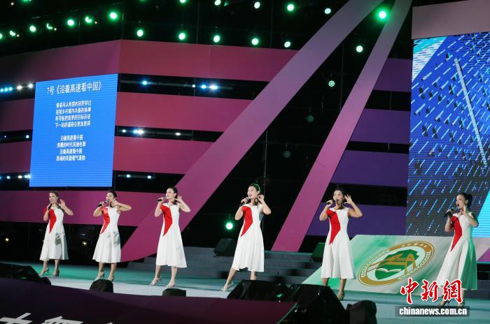 8月19日晚,东港市代表队演唱《沿着高速看中国》。黄兴鸿 摄