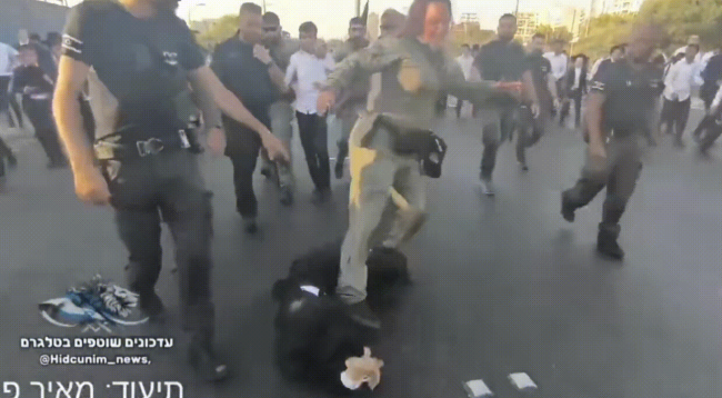 极端正统派犹太人被以色列女警踹头。不想服兵役极端正统派犹太人躺地上抗议被以色列女警察一脚踹头。今日俄罗斯网站8月20日发布视频,画面显示,一位极端正统派犹太人躺在路上,抗议以军的征兵令,结果头部被女警察踹了一脚。长期以来,以色列极端正统派犹太神学院的学生能免服兵役。2024年11月,以色列国防军发起对极端正统派犹太人的征兵令,遭到后者的强烈抵制。