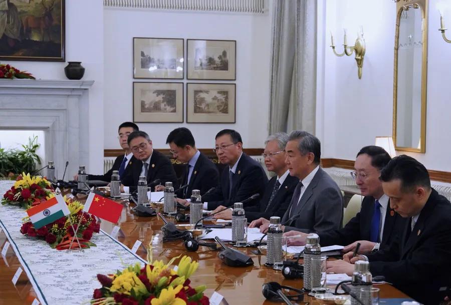 王毅表示,当今世界,百年变局加速演进,单边霸凌行径大行其道,自由贸易和国际秩序面临严峻挑战。值此联合国成立80周年之际,人类社会走到了决定未来方向的关键路口。中印作为总人口超过28亿的两个最大发展中国家,理应展现天下情怀,体现大国担当,为最广大发展中国家联合自强作出表率,为推动世界多极化、国际关系民主化作出贡献。