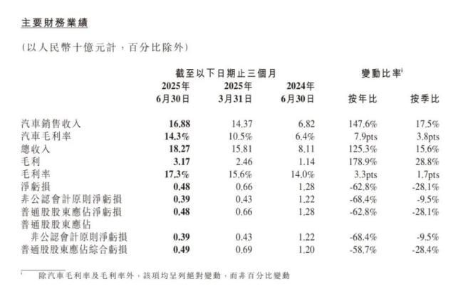 今年上半年,小鹏净亏损11.4亿元,去年为净亏损26.5亿元。除以股份为基础的薪酬开支及与或有对价有关的衍生负债的公允价值亏损(收益)外,上半年非公认会计原则净亏损为人民币8.1亿元,相较而言去年为人民币26.3亿元。截至2025年6月30日,现金及现金等价物、受限制现金、短期投资及定期存款为人民币475.7亿元,而去年底为419.6亿元。