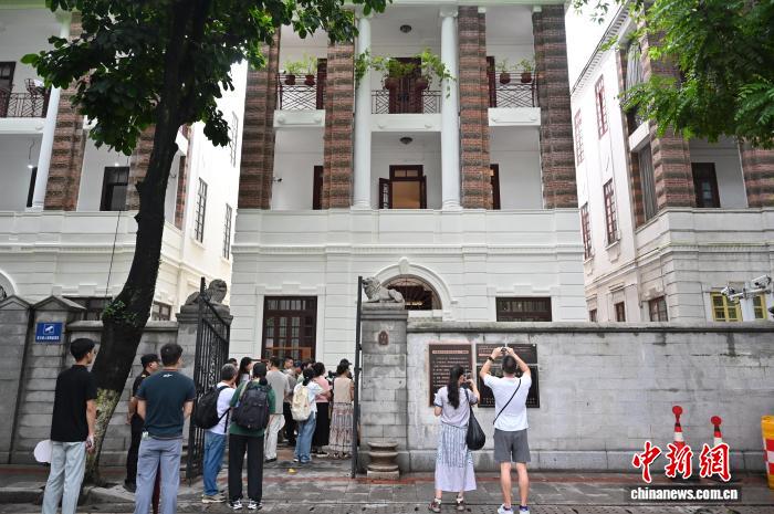8月20日,“行走的3号课堂:东山漫游之旅”在广州市越秀区举办,本次活动由中共三大会址纪念馆馆长朱海仁领衔导赏,带领游客沉浸式感受红色文化与岭南文脉的深度交融。图为中共中央机关旧址春园吸引游客参观拍照。中新社记者 陈楚红 摄