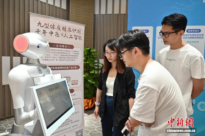 8月20日,十五运会和残特奥会广州赛区科技赋能+超级场景精准对接会在广州(国际)科技成果转化天河基地举行。图为智能中医服务吸引嘉宾参观体验。中新社记者 陈楚红 摄