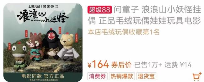电影的火爆推动了周边产品的热销。上映首日,《浪浪山小妖怪》周边销售额破700万元,角色玩偶卖到断货,盲盒产品出售超300万只。该电影已与瑞幸咖啡、晨光文具、捷成电影、问童子等超过30家企业达成联名合作,涉及潮玩、生活消费品牌、出版类、游戏等多个领域。