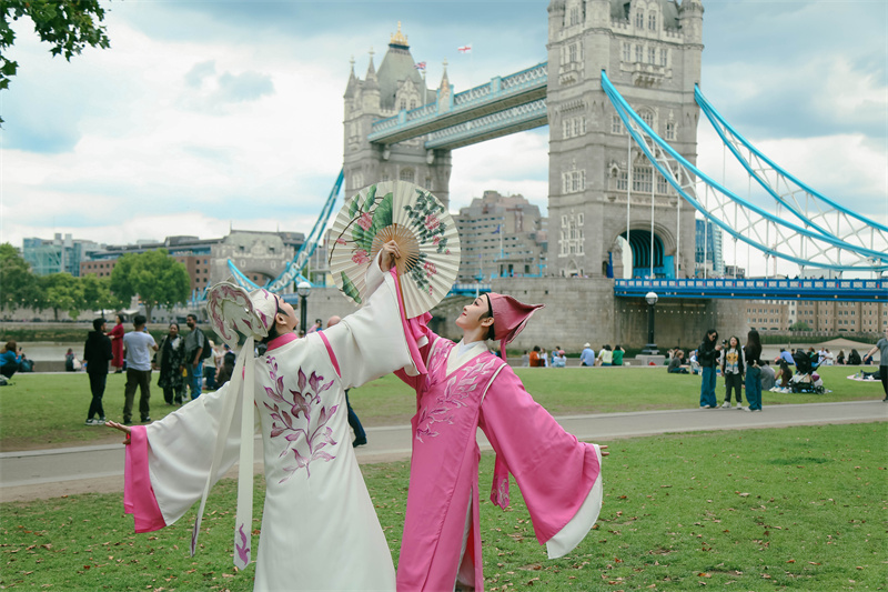 在伦敦塔桥前快闪。中国戏剧家协会供图