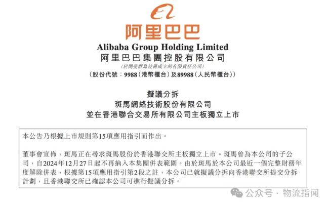 8月21日消息,阿里巴巴在港交所公告,拟议分拆斑马网络技术股份有限公司,并在香港联合交易所有限公司主板独立上市。斑马网络此前为阿里旗下子公司,自2024年12月27日起不再纳入阿里集团财务报表。截至公告日,阿里持有斑马网络约44.72%的股份。分拆完成后,阿里将继续持有斑马网络超过30%的股份,斑马将仍为公司的权益法被投资方。
