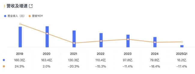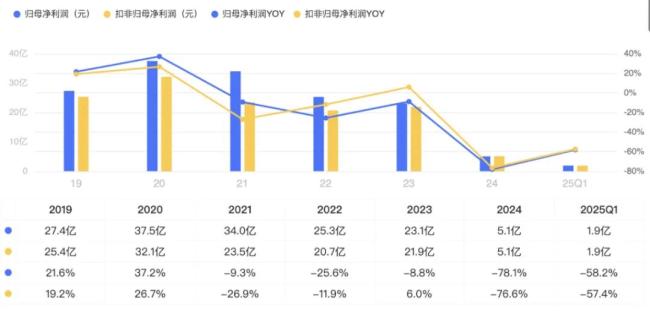 但为何业绩连续五年连续下滑?2020年-2024年的扣非归母净利润分别为32.1亿、23.5亿、20.7亿、21.9亿、5.1亿,2025年第一季度净利润继续下滑58.2%。