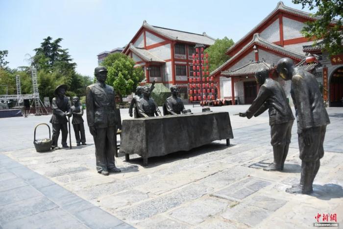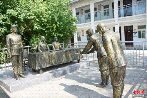 漯河市第二中学内复原日军受降仪式现场雕像。王宇 摄