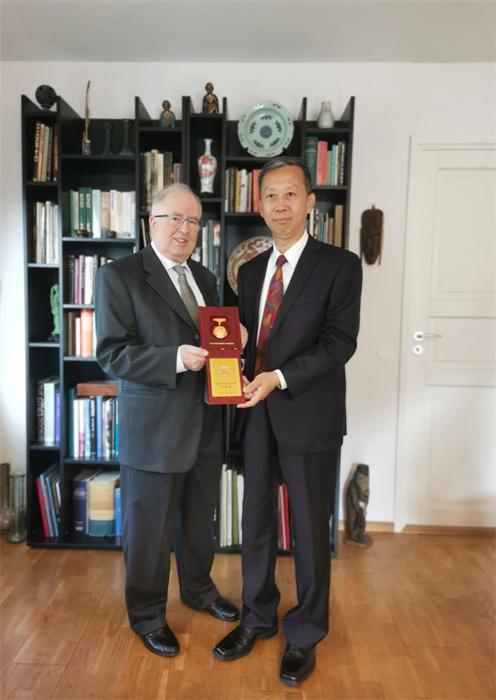人民网斯德哥尔摩8月27日电(记者殷淼)当地时间8月26日,中国驻瑞典大使崔爱民拜访为中国人民抗日战争作出贡献的波兰友人傅拉都遗属尤雷克,发放“中国人民抗日战争胜利80周年”纪念章,以表彰和感谢傅拉都的历史贡献。