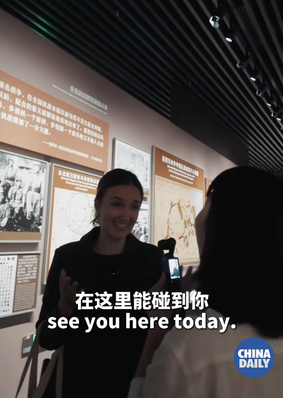 俄罗斯记者参观抗战纪念馆红了眼眶