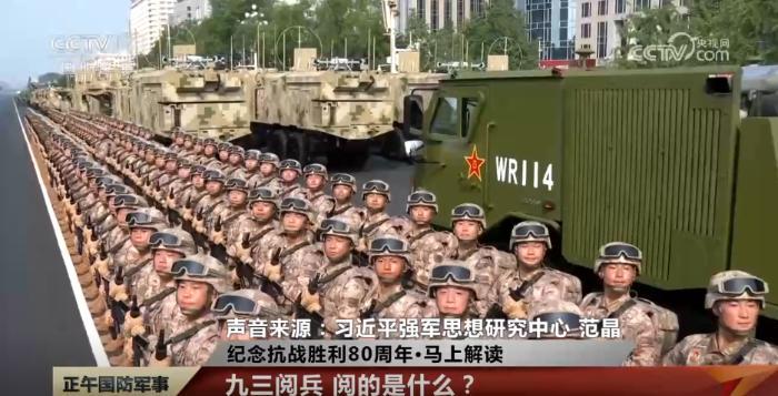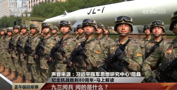 习近平强军思想研究中心 范晶:我们应从时代大趋势、时代大变局、时代大成就的视角,来看待这次阅兵。看似阅的是人和装备,其实阅的是改革重塑、面貌一新的强军风采,是对党忠诚、听党指挥的不变军魂,是薪火相传、熠熠荣光的红色基因,是不怕牺牲、敢打必胜的精神内核,展现的是正义的力量、和平的力量,让党和人民放心的不可战胜的力量。