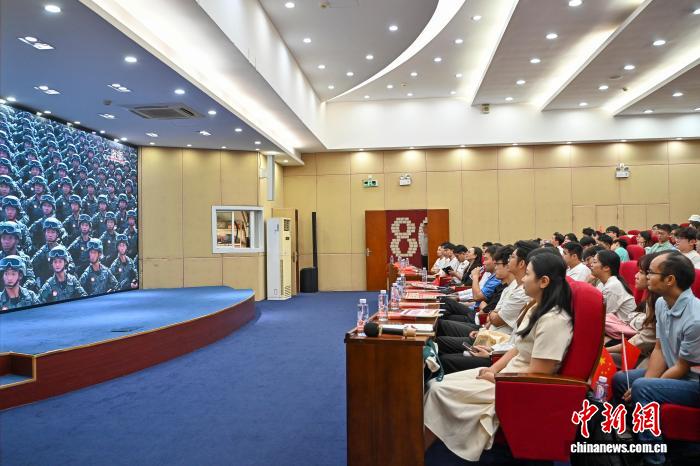 9月3日是中国人民抗日战争暨世界反法西斯战争胜利80周年纪念日。位于广州的暨南大学组织港澳台侨学生集体观看纪念中国人民抗日战争暨世界反法西斯战争胜利80周年大会直播。中新社记者 陈骥旻 摄