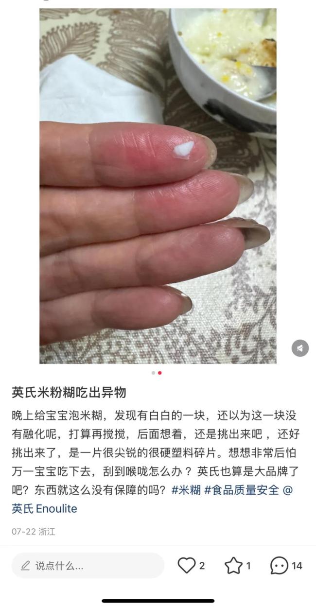 英氏米粉被指频现异物,客服称不确定为何物