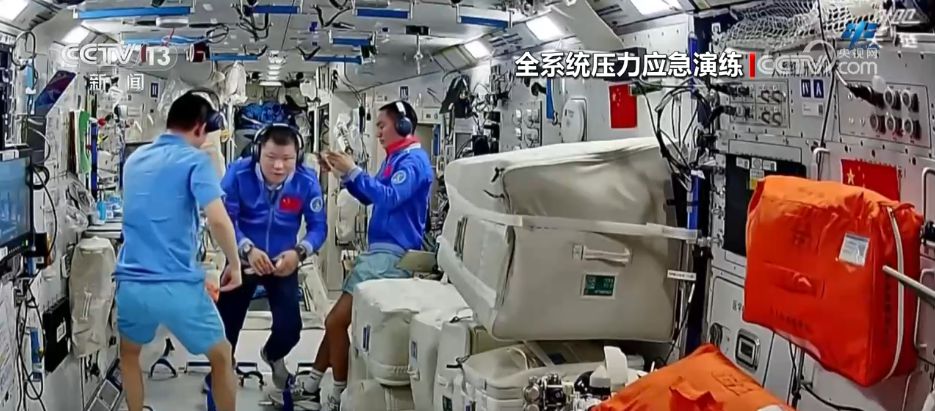 在微重力物理科学领域,各项实验持续进行。乘组完成了燃烧柜实验插件点火头及燃烧器更换,无容器柜样品更换、轴心机构视窗盖镜片更换等工作。上周,全系统压力应急演练按计划定期开展。演练主要模拟空间站面临内部失压情况时,乘组进行紧急处置的全流程,巩固并进一步提升航天员应急处置能力以及天地协同配合能力。