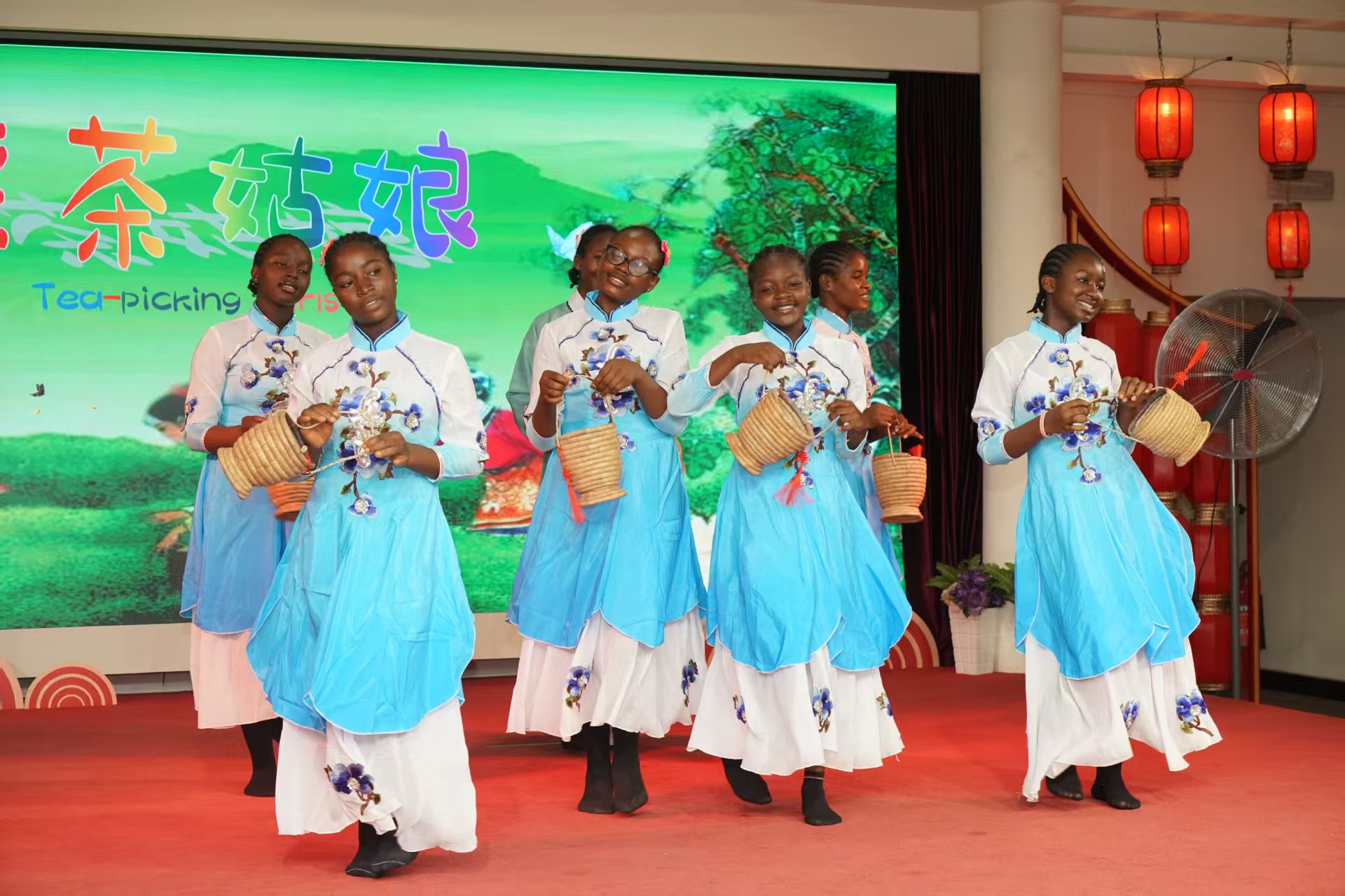 “中国之角”学生表演舞蹈《采茶姑娘》。尼日利亚中国文化中心供图