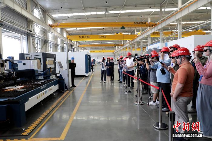 记者团还采访了济南森峰激光科技有限公司,现场感受了激光切割技术。该公司亚非大区营销总监李国宾介绍说,公司专注于金属成型自动化解决方案的科技创新型企业,产品出口至100多个国家及地区,业务覆盖全球市场,希望通过外国记者采访团进一步拓展公司海外业务,为更多海外客户提供激光加工综合解决方案。
