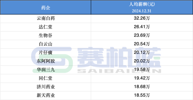 截至9月23日,A股共有70家中药企业。同花顺数据显示,2024年人均薪酬前十位依次为云南白药、达仁堂、生物谷、白云山、片仔癀、东阿阿胶、华润三九、同仁堂、济川药业与新天药业。