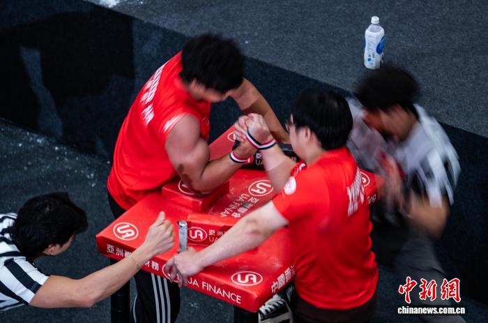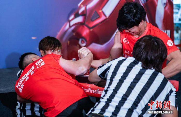 图为两名参赛选手奋力争胜。中新网记者 侯宇 摄