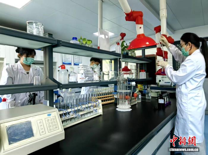 图为水厂工作人员进行水质检测。沙见龙 摄
