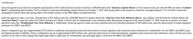所以,诺诚健华“贱卖”资产了吗?真不一定。值得注意的是,Zenas与诺诚健华交易包含现金和股权交易两部分。根据公告,在支付首付款时,Zenas还将按每股0.0001美元向诺诚健华发行500万股的股份,约等于Zenas公司10%左右的股份,而这些股份基本等于白送。