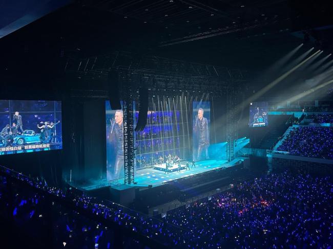 当《留住这时光》的旋律响起时,现场瞬间安静下来,歌迷们沉浸在熟悉的歌声中,仿佛被带回了那些值得珍藏的时光片段。随后,节奏欢快的《情不禁》点燃了现场气氛,张学友充满活力的演唱让歌迷们跟着音乐摇摆起来。他还用极具感染力的嗓音演唱了《我应该》和《等你等到我心痛》等抒情歌曲,将情感表达得淋漓尽致,不少歌迷眼中泛着泪光,沉浸在音乐营造的氛围中。