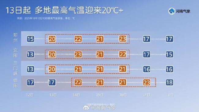 连续多日的阴雨天气终于在10月13日暂停。对于河南大部分地区来说,今天可以稍微松一口气。根据河南省气象台的最新预报,今天白天,商丘、周口、信阳等地的小到中雨将逐渐停止,天气转为阴天;省内其他大部分地区也将从阴天慢慢转为多云。